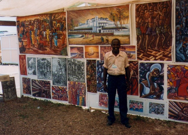 Erster Kontakt auf der Handelsmesse 1990 in Accra Mr. Bentil vor seiner Ausstellungswand bei der "Traid Fair" 1990 in Accra