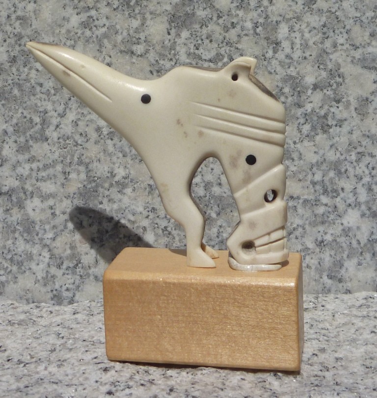 Zu dem Ritual der Inuit gehört der Tanz und die Trommel Die beiden Figuren stellen zwei Freunde dar, die mit der besten Freundschaft die es gibt verbunden waren und stets miteinder tanzten. Als einer der Beiden verstarb - so erzählt die Überlieferung - erschien er stets seinem Freund beim traditionellen Fest und tanzte und spielte mit ihm.