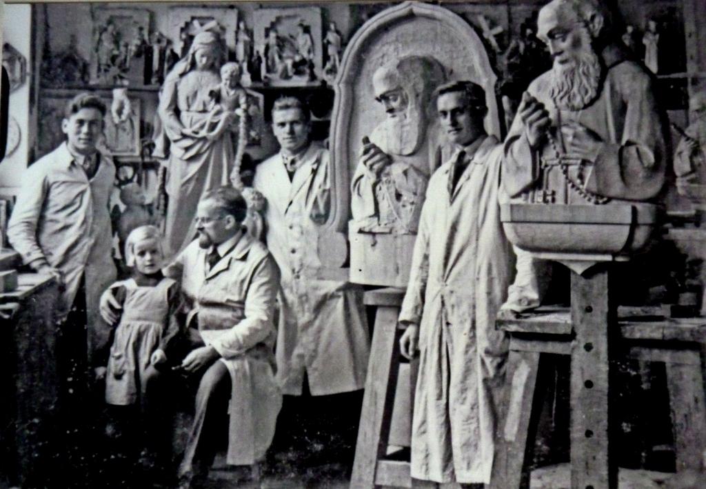 Franz Teckentrup (2. von rechts) im Atelier des Bildhauers Müller, Eselsgasse.